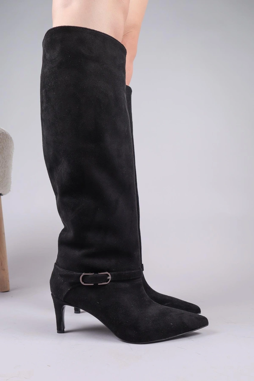 Vayzata Kemerli Süet Çekme Çizme Siyah-8411 Siyah