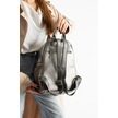 Vegan Deri Kadın Sırt Çantası 35 25 Cm Yağmur İtici Kumaş Mega Bag Günlük Kullanıma Uygun Gümüş