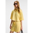 VELA Kadın Esnek Kumaşlı Bisiklet Yaka Oversize Fit Sarı T-Shirt