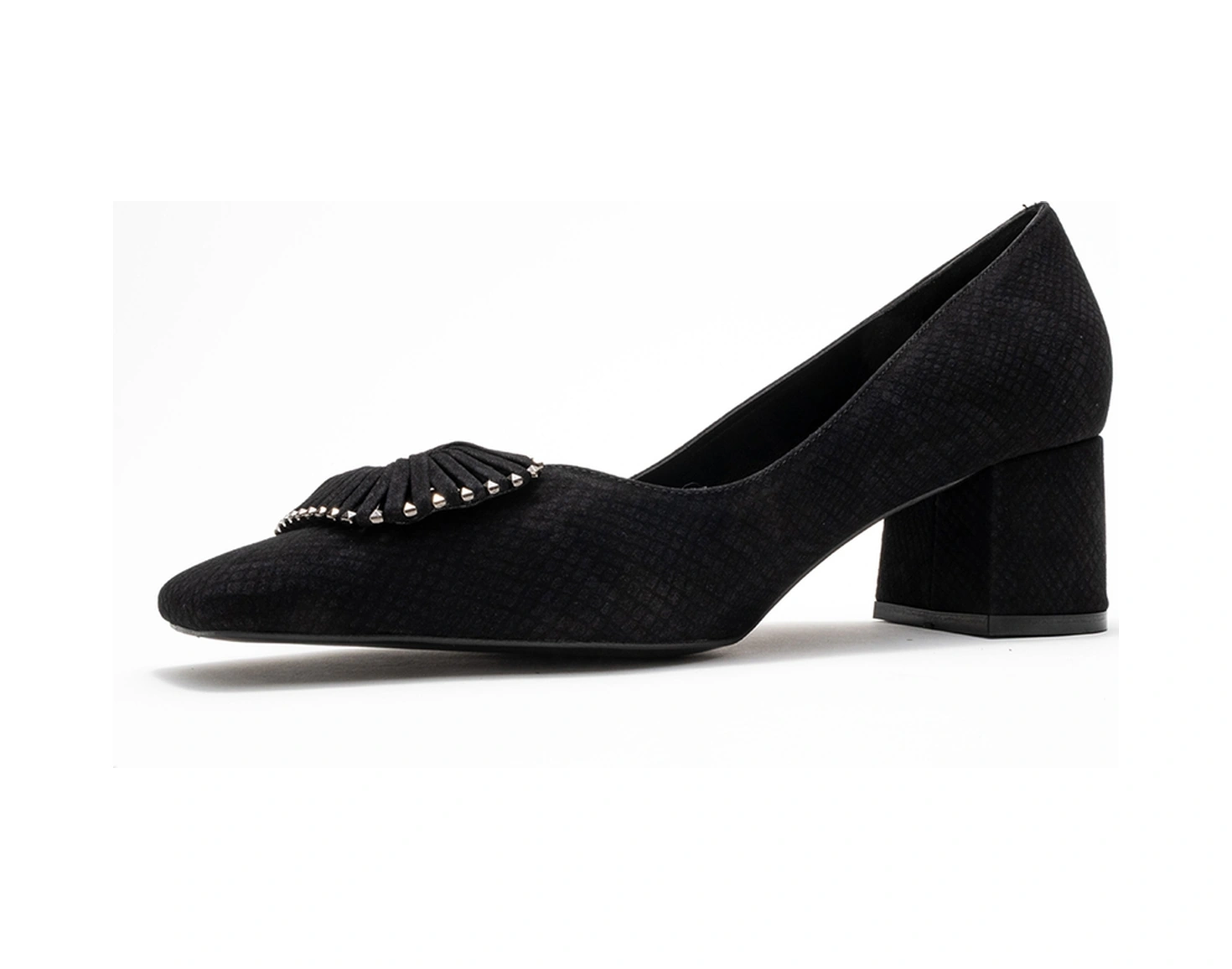 Velora Siyah Desenli Tokalı Kadın Kalın Topuklu Ayakkabı Siyah Yılan