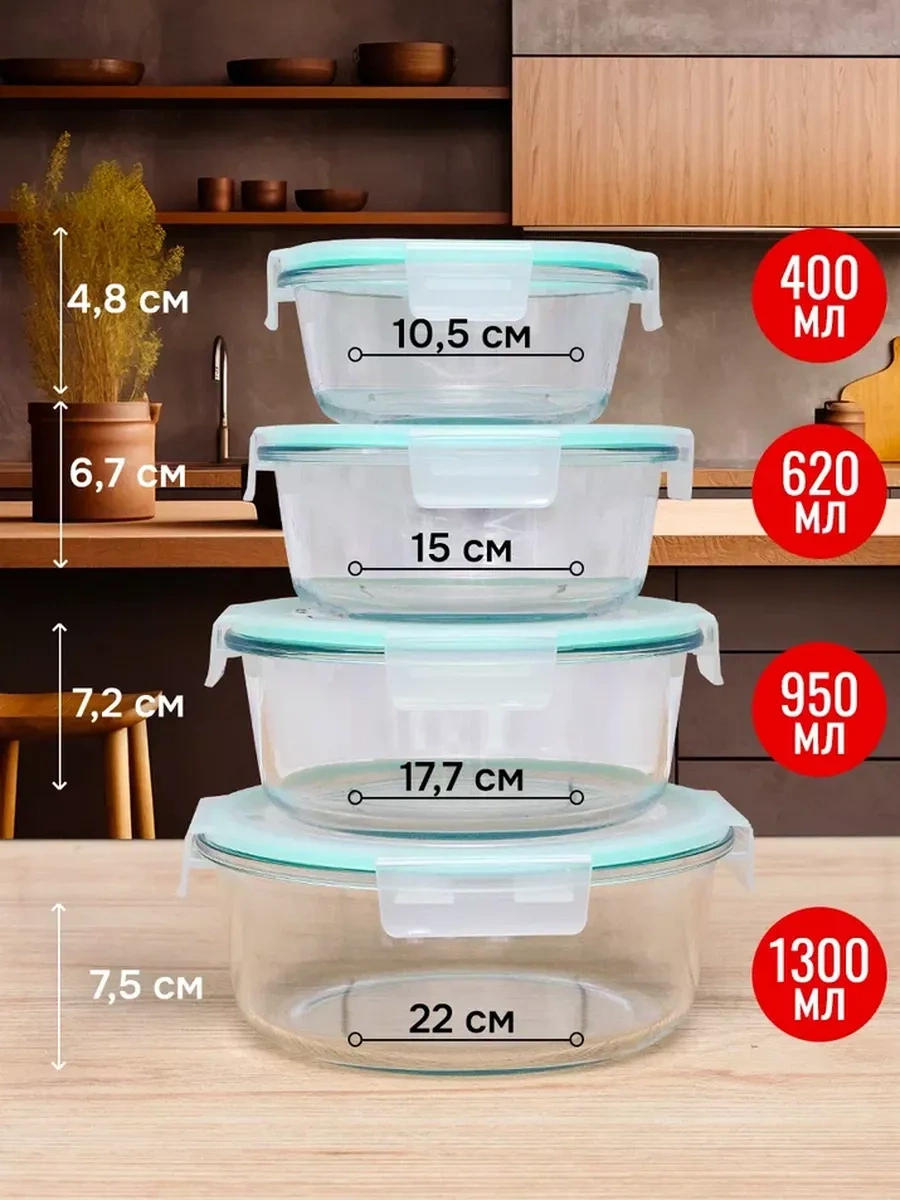 Velton Kapaklı 4'lü Hava Geçirmez Cam Saklama Kabı Seti 209020728