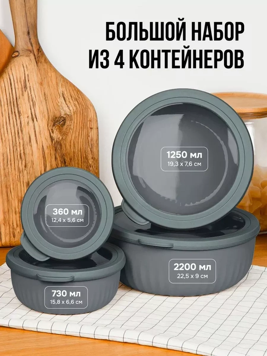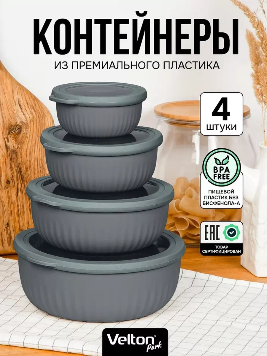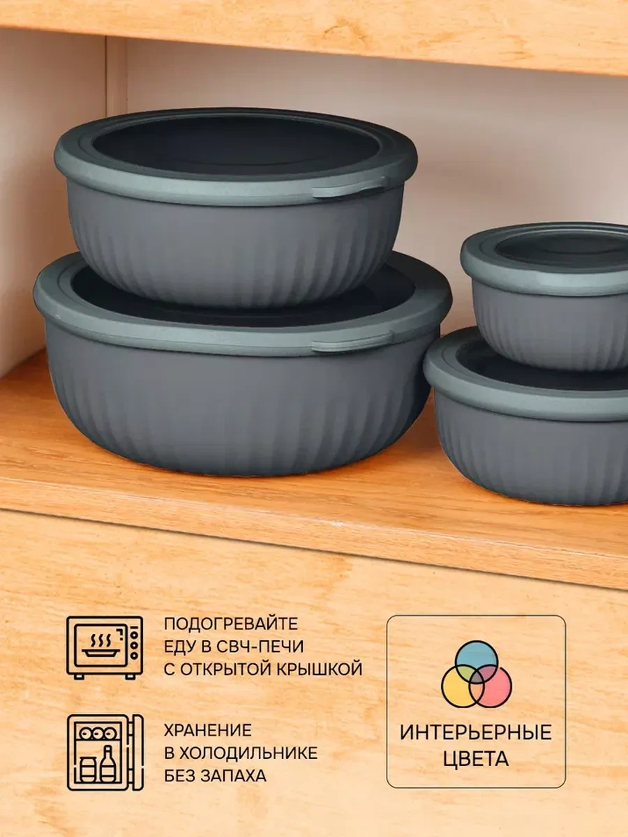 Velton Sızdırmaz Yuvarlak Yemek Kapaklı Saklama Kapları Seti 238321248 Siyah