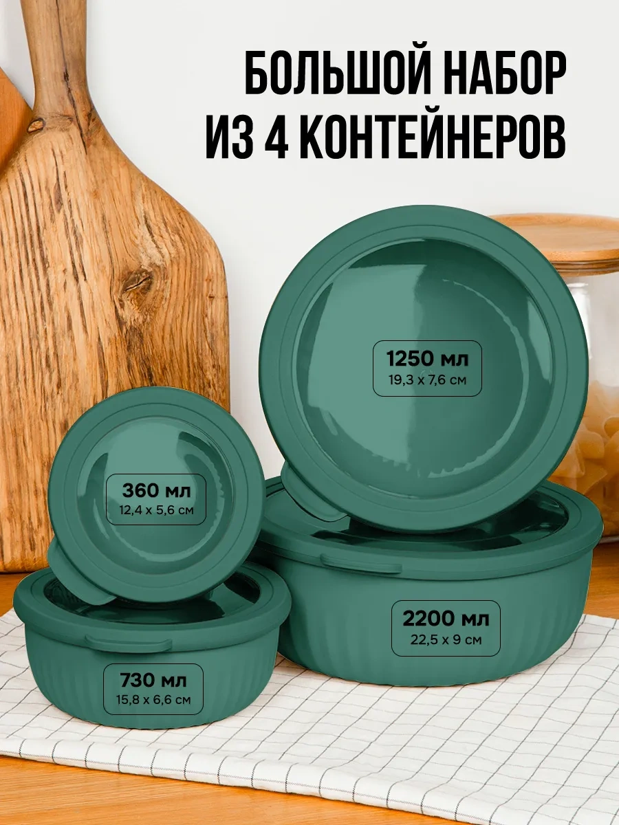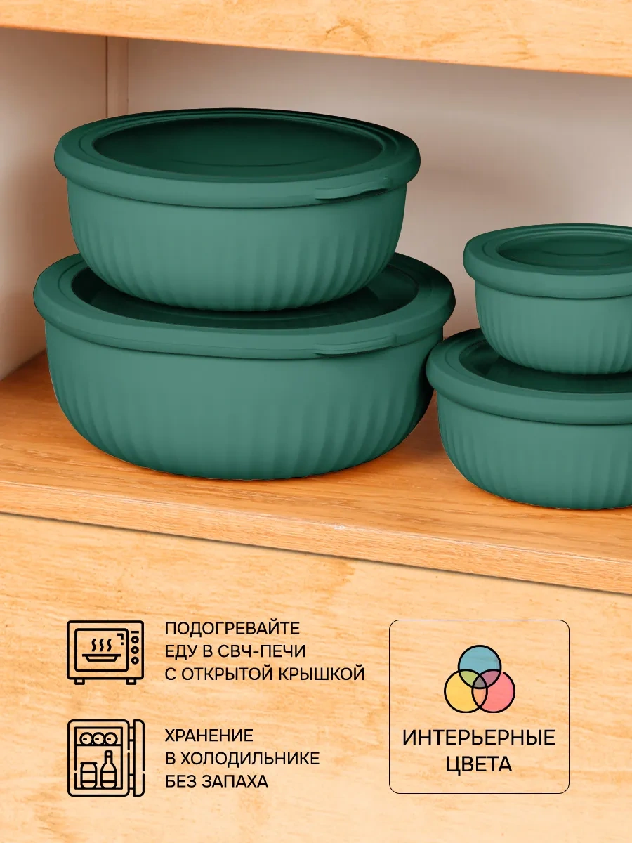 Velton Sızdırmaz Yuvarlak Yemek Kapaklı Saklama Kapları Seti 238321296 Zümrüt