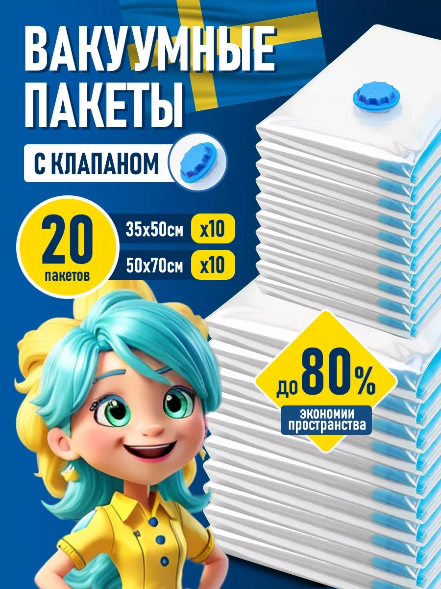 Velton Valf'li Kıyafet Depolama Vakum Poşetleri Seti 20 Adet 214157748