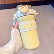 Velvettides Kişilik Alfabe Termos Bardak Taşınabilir Pipet Su Bardak Erkekler Ve Kızlar Su Bardak Öğrenci Spor Su Şişesi Sarı