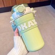 Velvettides Kişilik Alfabe Termos Bardak Taşınabilir Pipet Su Bardak Erkekler Ve Kızlar Su Bardak Öğrenci Spor Su Şişesi Yeşil