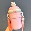 Velvettides Paslanmaz Çelik Termos Bardak Portatif Öğrenci Çapraz Boy Süper Sevimli Bardak Pembe