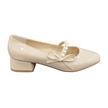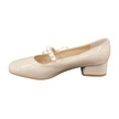 Ventes Yuvarlak Burun 3 Cm Kalın Topuk İnci Tokalı Kadın Topuklu Ayakkabı Bej