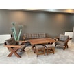 Verona Masif Ahşap Bahçe Koltuk Takımı Kestane Ağacı 3+1+1 Masa Kahverengi