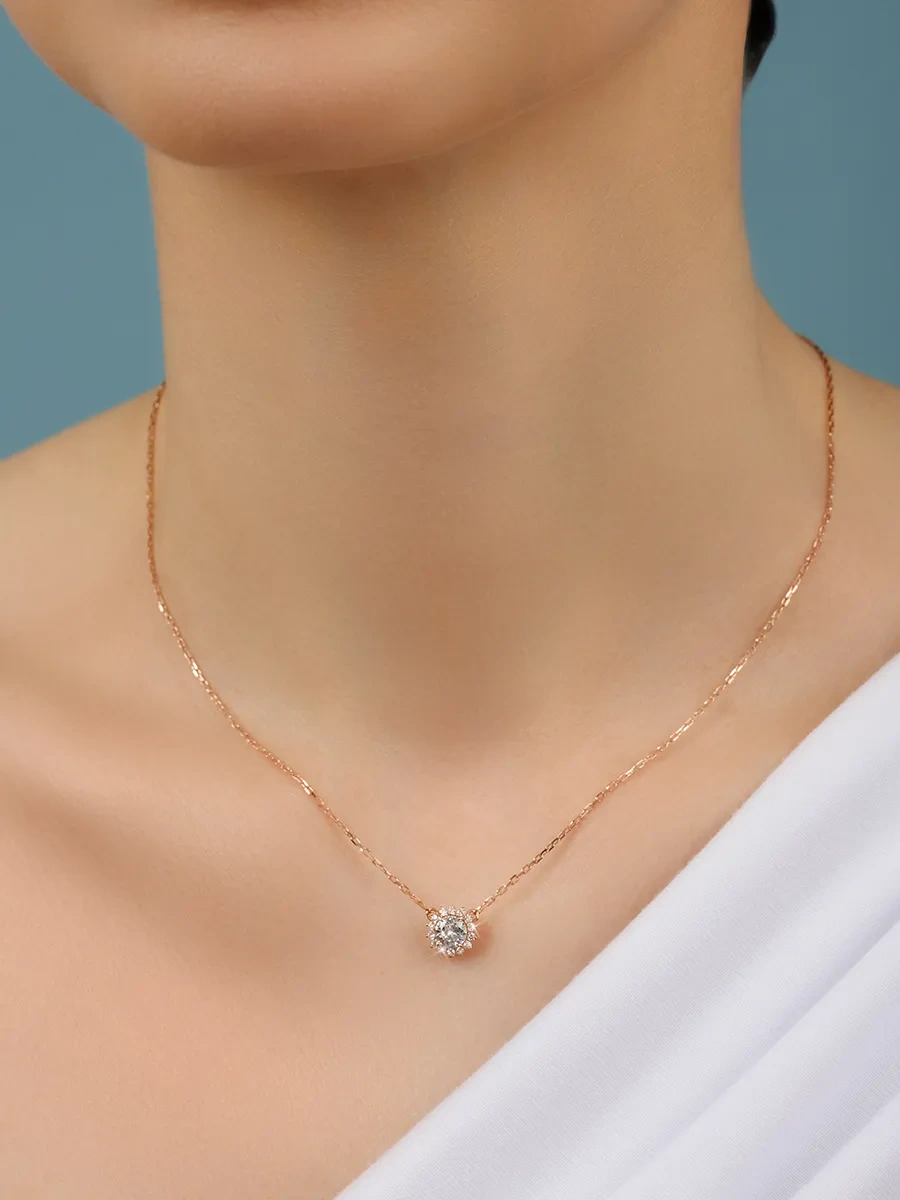 Pembe Zirkon Taşlı Lotus Çiçeği Model 925 Ayar Gümüş Kadın Kolye