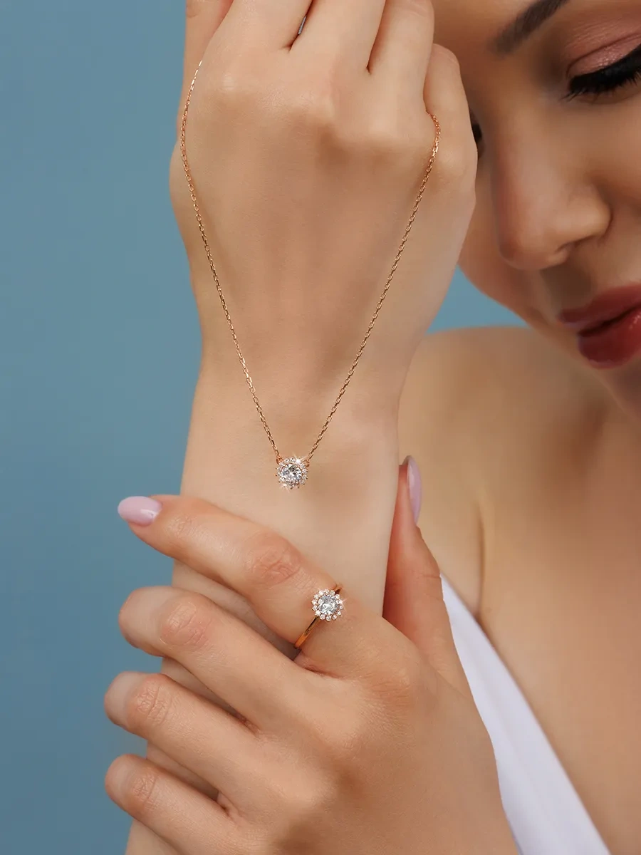 Göz-güneş Model Gold Rengi Zirkon Taşlı 925 Ayar Gümüş Kadın Kolye