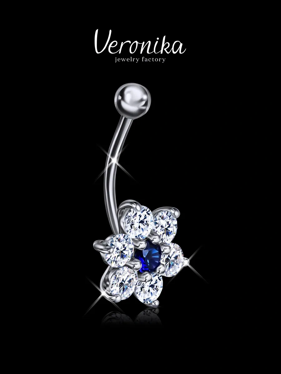 Veronika 925 Ayar Gümüş Çiçek Göbek Deliği Piercingi 243937222 Gri