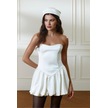Eteği Volanlı Uzun Elbise Kırık Beyaz