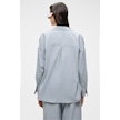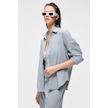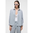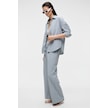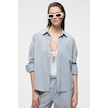 VESTA Kadın %100 Pamuk Keten Görünümlü Flamlı Oversize Gri Gömlek