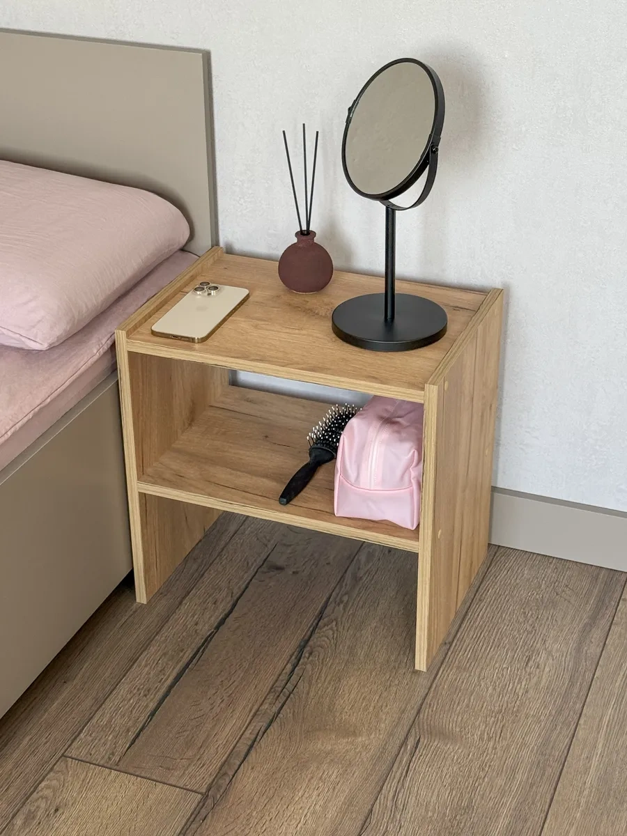 Harmony Silver Iki Çekmeceli Komodin- Yatak Odası Kumaş Döşemeli 2 Kapaklı Komodin Modeli Pembe