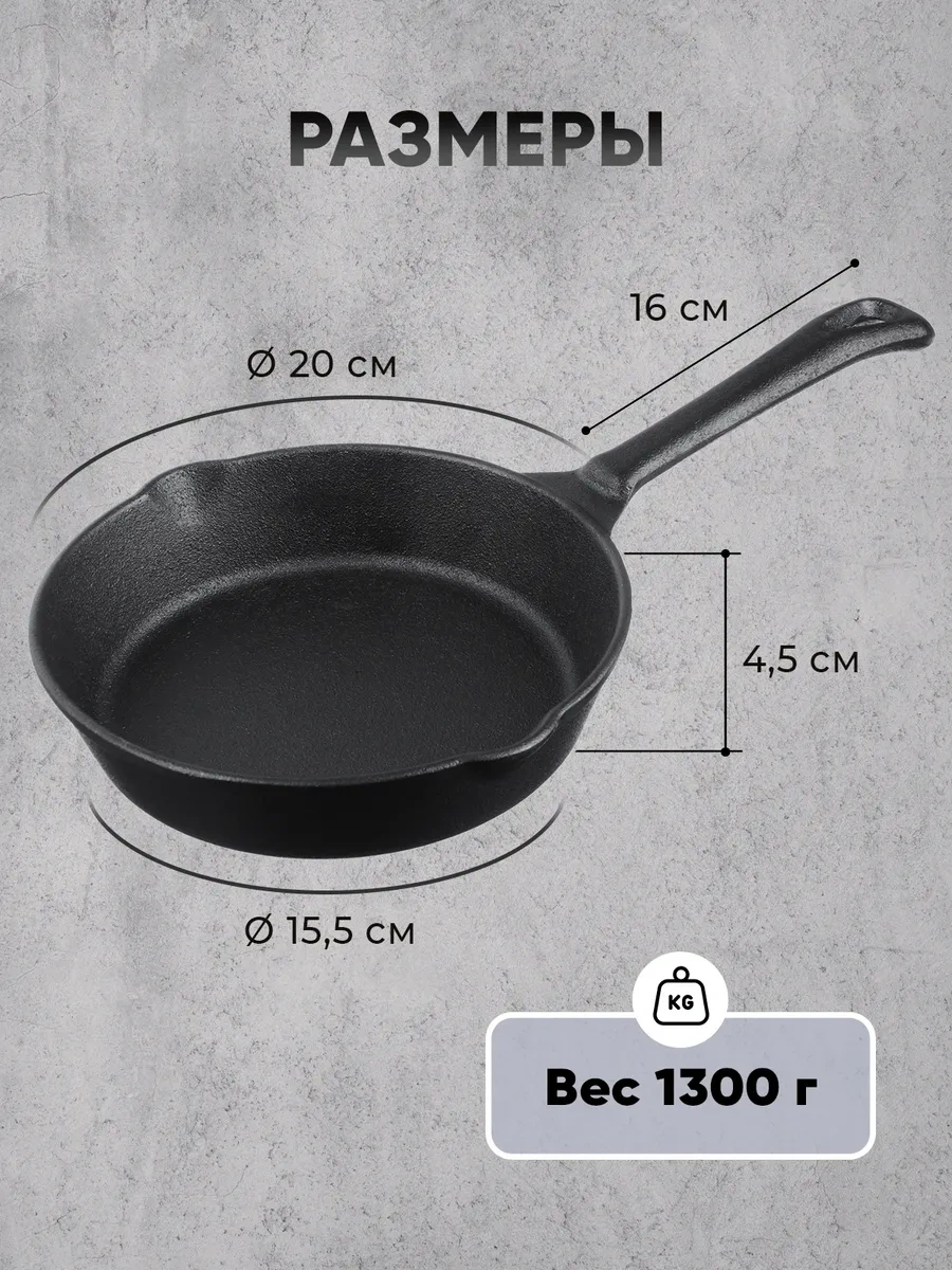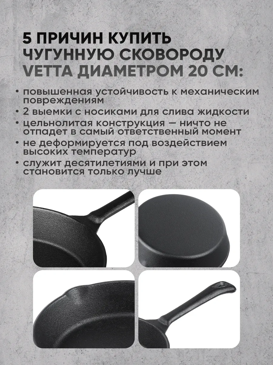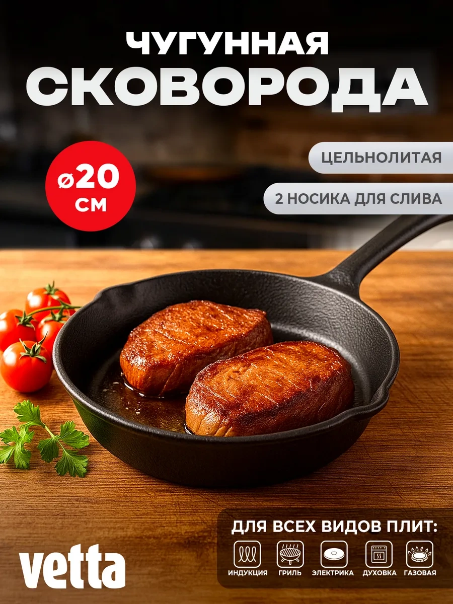 Vetta İndüksiyonlu Ocaklar İçin 20 Cm Dökme Demir Tava, 2 Çıkışlı 78525435 Siyah