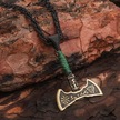 Viking Çift Taraflı Balta Yeşil İpli Erkek Kolye Çelik İskandinav