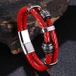 Viking Tarzı İskandinav Runeleri Muska Çift Katmanlı Paslanmaz Çelik Erkek Deri Bileklik İskandinav Mitolojisi Takıları Bb1355 Kırmızı
