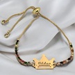 Vildan İsmine Özel Renkli Taş Desenli Taç Motifli 14 Ayar Altın Plakalı Hediye Bileklik-489isim Vildan