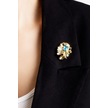 Mineli Turkuaz Ve Krem Balık Figürlü Gold Renk Kadın Broş