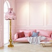 Vintage Ahşap Gold Ayak Pudra Pembe Lambader Püskül Süsleme 170x45cm Lm10422 Pembe