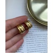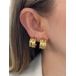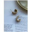 Vintage Çizgili Yarım Halka Çelik Kararmaz Küpe Çifti Altın