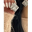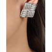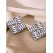 Vintage Kare Doku Geometrik Çelik Küpe Gümüş