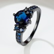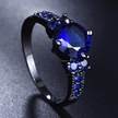 Vintage Mavi Yuvarlak Kristal Siyah Altın Renk Yüzük Alyanslar Kadınlar Için Aşk Promise Nişan Takı 5 Çok Renkli