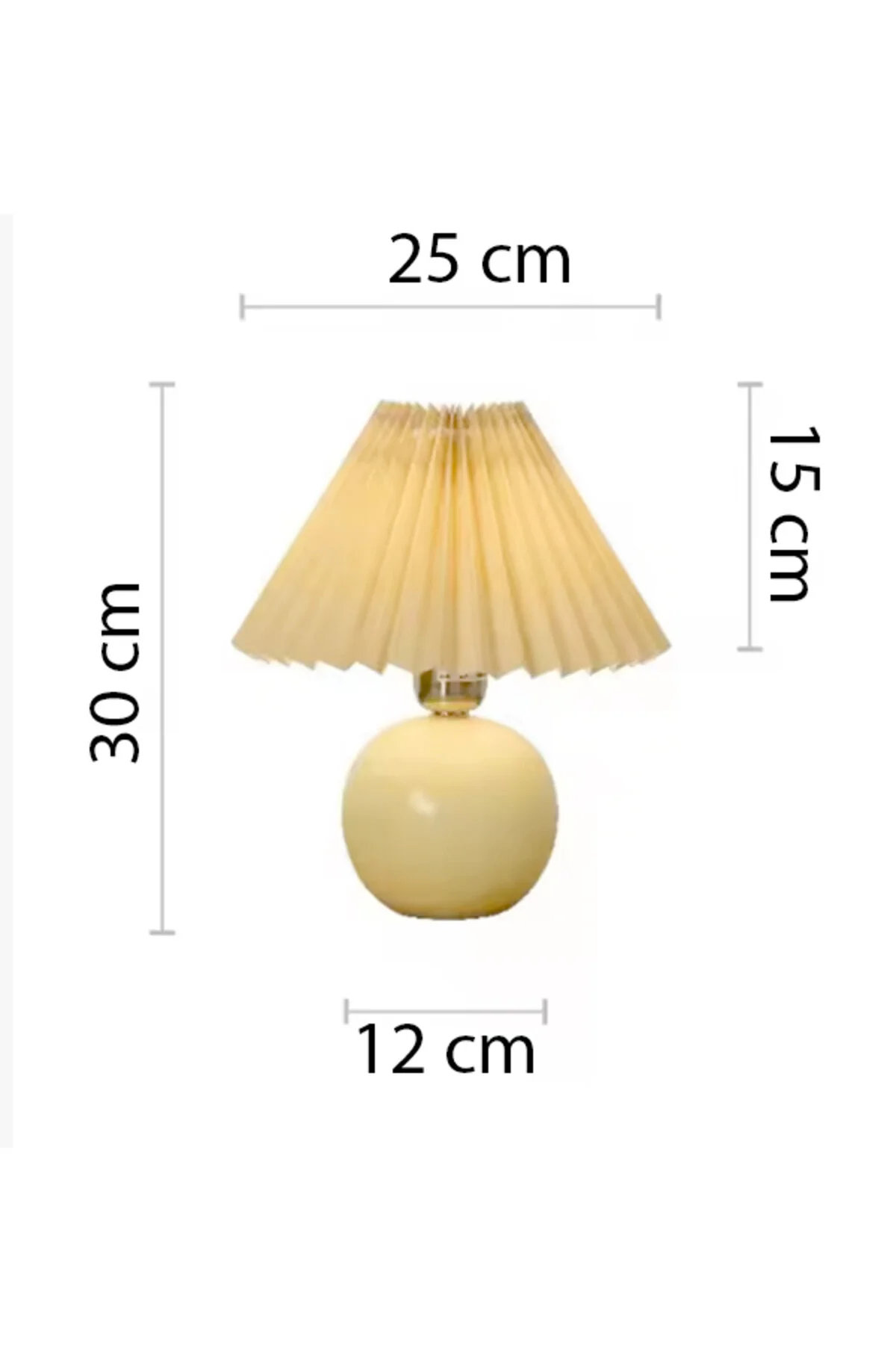 Vintage Pileli Seramik Komidin Yatak, Oturma, Çocuk Odası Çalışma Masası Ve Gece Lambası KREM RENK