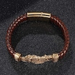 Vintage Punk Tarzı Erkek Bileklik Gerçek Deri Altın Rengi Motosiklet Paslanmaz Çelik Bileklikler Erkek Takıları Siyah