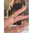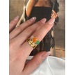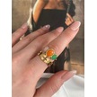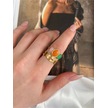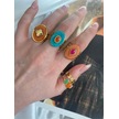 Vintage Renkli Oval Taşlı Çelik Kararmaz Ayarlanabilir Gold Yüzük