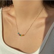 Vintage Renkli Taşlı Çelik Kolye Altın
