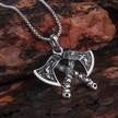 Vintage Viking Çift Taraflı Balta Erkek Kolye Çelik İskandinav
