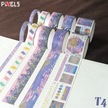 Vintage Washi Tape Bant Baskılı Yapışkanlı Maskeleme Kağıdı 45e Desenli Bant 10'lu - Mor Göl 1