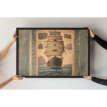 Vintage Yelkenli Gemi Çerçeveli Tablo Denizcilik Temalı Duvar Dekoru Klasik Sanat 30x42 Cm