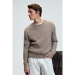 VINTLACE Erkek Yuvarlak Yaka Saç Örgü Desenli Regular Fit Triko Bej Kazak