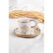 Violet 6 Kişilik Hayat Ağacı Desenli Gold Yaldızlı Porselen Kahve Fincan Takımı Beyaz