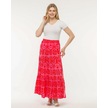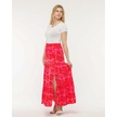 Viskon Kumaş Desenli Yırtmaçlı Uzun Etek 01 Pembe