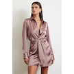 Viskon Saten Gömlek Elbise Yeşil Yeşil