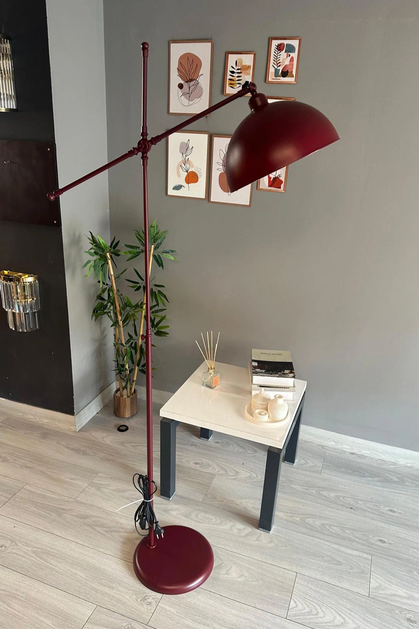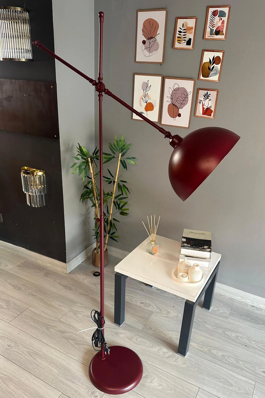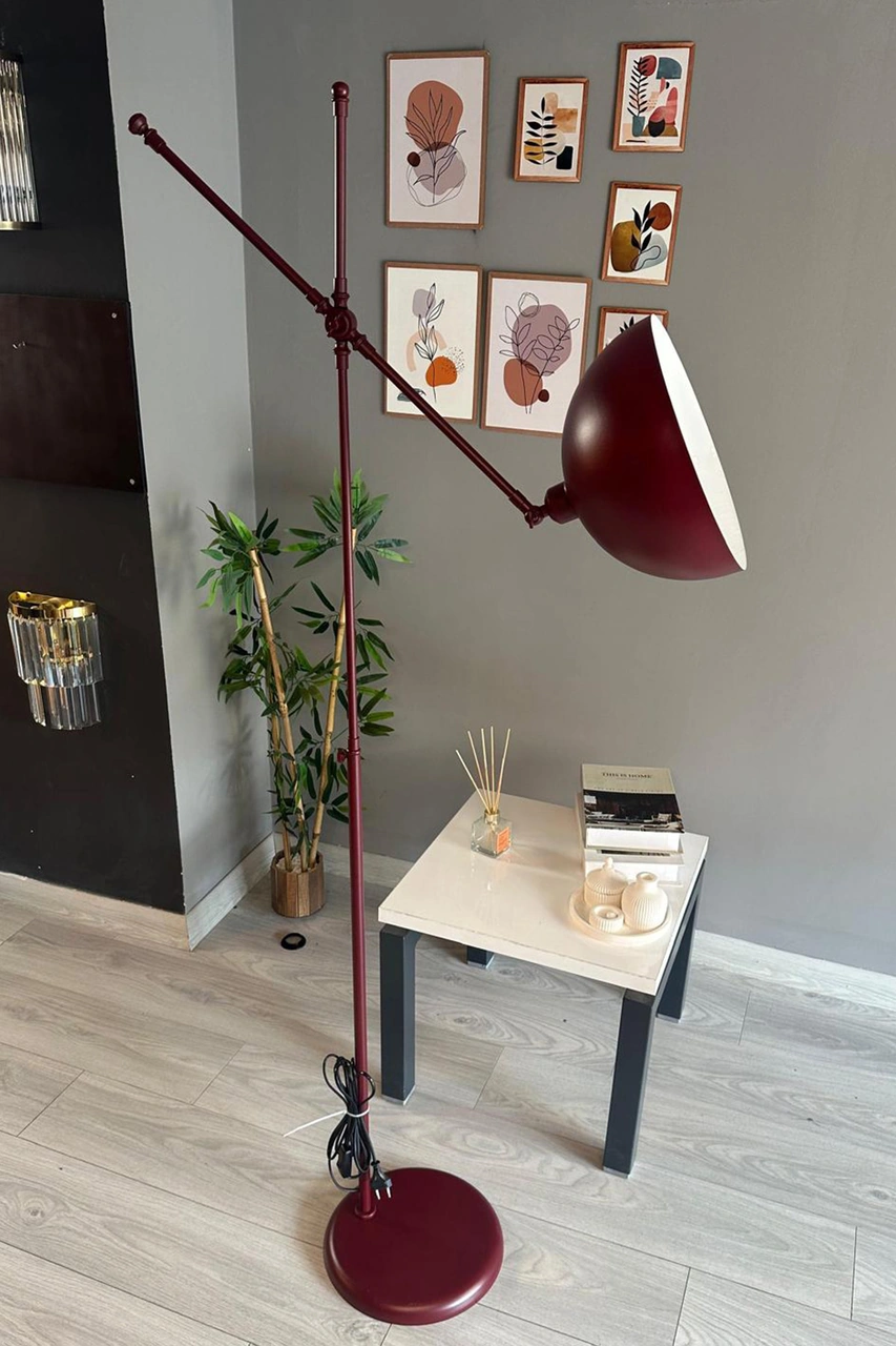 Vişne Çürüğü Lambader Hareketli Başlık Modern Dekoratif Metal Oturma Odası Çalışma Odası Zemin Bordo