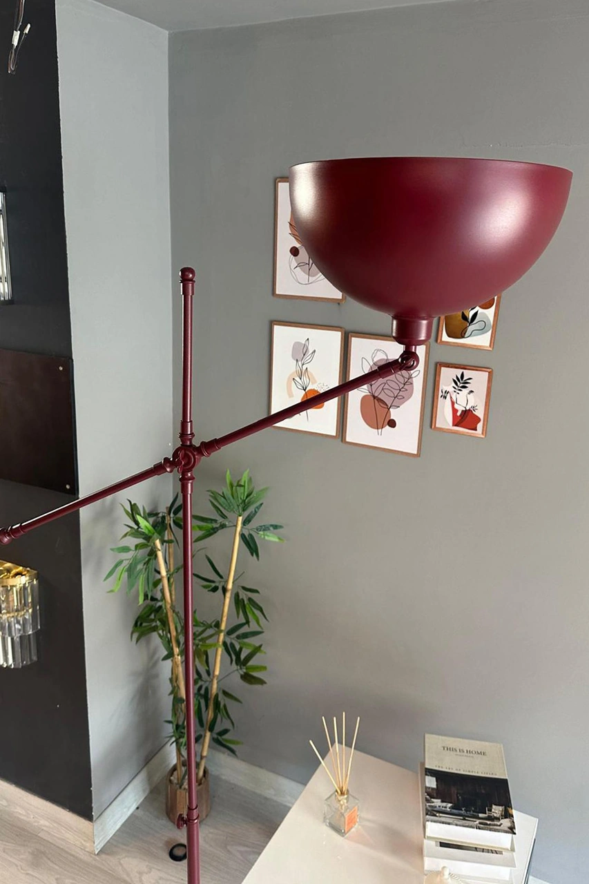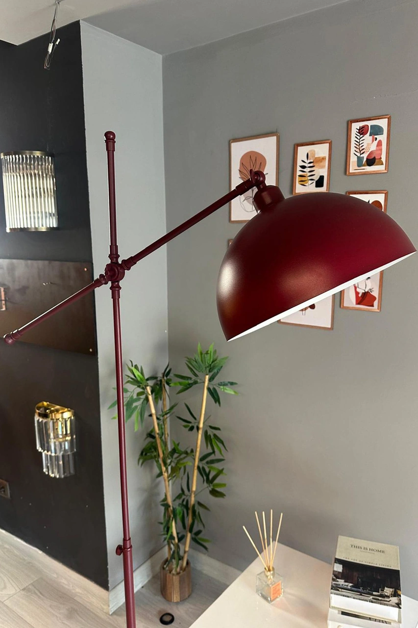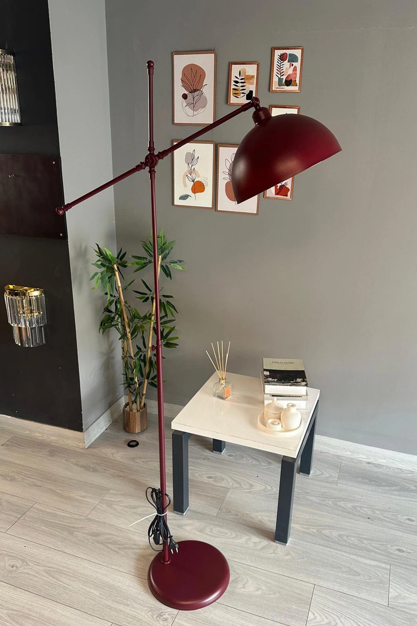 Vişne Çürüğü Lambader Hareketli Başlık Modern Dekoratif Metal Oturma Odası Çalışma Odası Zemin Bordo