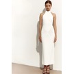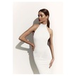 Eteği Volanlı Uzun Elbise Kırık Beyaz
