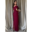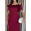 Vivenza Gül Detaylı Omuz Açık Kayık Yaka Uzun Bordo Abiye Elbise, Nişan Ve Düğün Zarafeti Bordo