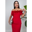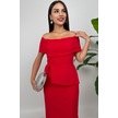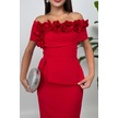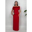 Vivenza Gül Detaylı Omuz Açık Kayık Yaka Uzun Kırmızı Abiye Elbise, Nişan Ve Davet Zarafeti Kırmızı