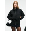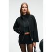 VIVETY Kadın Dik Yakalı Metal Fermuarlı Korse Görünümlü Bele Oturan Regular Siyah Ceket