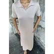 Vizon Polo Yaka, Kısa Kol, Yırtmaçlı, Basic Model, Uzun Salaş Elbise Vizon