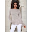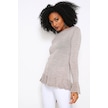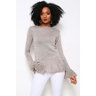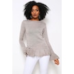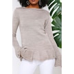 Vizon Yuvarlak Yaka, Fırfır Kol Ve Etek Ucu Detaylı, Triko Bluz Vizon