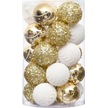 Vkemall 25 Adet 6cm Boyalı Noel Topu Seti - Noel Ağacı Süsleri, Şampanya Altın + Beyaz Renkli, Festivite Atmosferi Oluşturucu