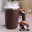 Vkemall 55 C Sabit Sıcaklık Li-ion Şarjlı 304 Çelik Magnetik Karıştırıcı Bardak - 300ml Ip65 Su Geçirmez Ofis/kahve/çikolata - Ut-52 Açık Ahşap Desenli Açık Ahşap