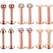 Vkemall 6 Çift Gümüş Çelik Gövde Delme Takımı - Gül Altın Renkli Dudak Piercingi, 1.2mm Çubuk Çapı, 8mm Uzunluk, 3-4mm Toplar Gold